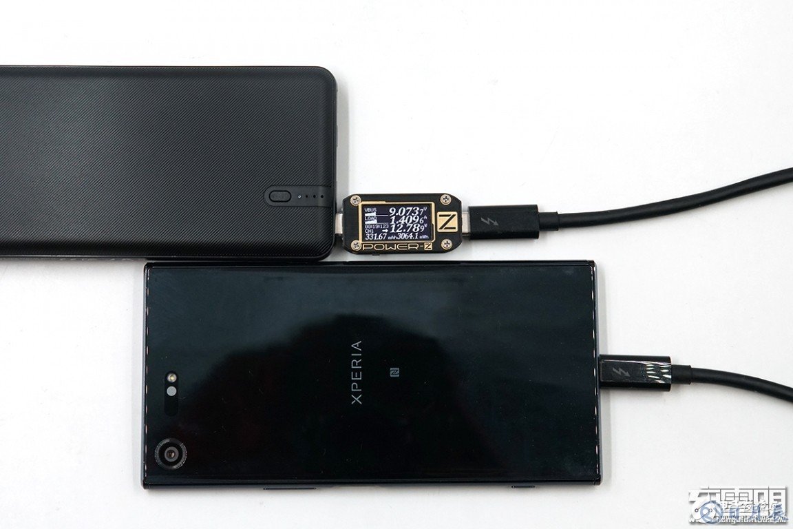 充SONY XZ Premiun,剩余電量16%,電壓為9.07V,電流為1.40A,功率為12.78W,支持USB PD充電。