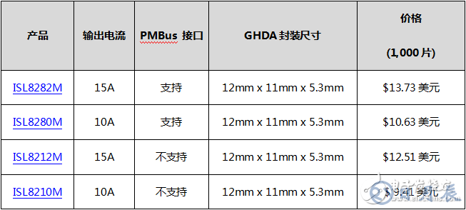 ISL828xM混合數(shù)字電源模塊和ISL821xM模擬電源模塊現(xiàn)已供貨,并可從瑞薩電子的全球分銷商處購買,相關(guān)價(jià)格如下表所示: