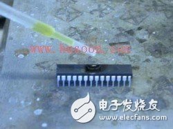 芯片上面的塑料可以用小刀揭開(kāi),芯片周?chē)沫h(huán)氧樹(shù)脂可以用濃硝酸腐蝕掉。熱的濃硝酸會(huì)溶解掉芯片封裝而不會(huì)影響芯片及連線。該過(guò)程一般在非常干燥的條件下進(jìn)行,因?yàn)樗拇嬖诳赡軙?huì)侵蝕已暴露的鋁線連接 (這就可能造成解密失敗)。