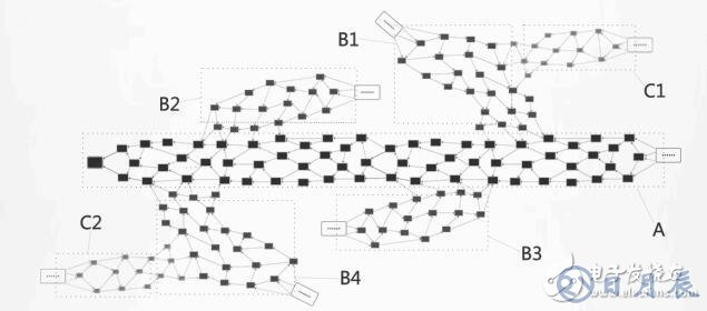 當(dāng)網(wǎng)絡(luò)中的節(jié)點的數(shù)量和交易者的數(shù)量足夠多時,TOS網(wǎng)絡(luò)的區(qū)塊就形成了多個不同層級的區(qū)塊網(wǎng)絡(luò),如下圖所示,區(qū)塊網(wǎng)絡(luò)形成的越早,區(qū)塊網(wǎng)絡(luò)的層級越高; A區(qū)塊網(wǎng)絡(luò)中的區(qū)塊為最早形成的區(qū)塊網(wǎng)絡(luò)是層級最高的區(qū)塊網(wǎng)絡(luò), B1-B4為A區(qū)塊網(wǎng)絡(luò)的子區(qū)塊網(wǎng)絡(luò),A區(qū)塊網(wǎng)絡(luò)為B1-B4區(qū)塊網(wǎng)絡(luò)的父區(qū)塊網(wǎng)絡(luò),C1-C2區(qū)塊網(wǎng)絡(luò)處于當(dāng)前區(qū)塊網(wǎng)絡(luò)的末層,為當(dāng)前層區(qū)塊網(wǎng)絡(luò)的最低層;層級較高的區(qū)塊網(wǎng)絡(luò)在交易中逐漸衍生出多個層級較低的區(qū)塊網(wǎng)絡(luò)分層,以此類推,最終形成了類似于海洋、江河、小溪的區(qū)塊網(wǎng)絡(luò)結(jié)構(gòu)。