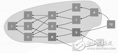 網(wǎng)絡(luò)工作的情況下,TOS按以上方式運行。是由多個不同層級的DAG (有向無環(huán)圖)組成一個樹狀結(jié)構(gòu),也稱之為SDAG(超級有向無環(huán)圖)。通過節(jié)點發(fā)出的所有區(qū)塊構(gòu)成了這個超級有向無環(huán)圖DAG的集合,并且SDAG不存在全局的區(qū)塊鏈。每筆新的交易出現(xiàn)時,生成一一個新區(qū)塊,且新區(qū)塊必須驗證之前的兩個區(qū)塊。我們定義,新節(jié)點驗證舊節(jié)點稱為新節(jié)點為輸出舊節(jié)點為輸人。這些驗證關(guān)系通過有方向的邊來表示,如圖所示(在圖中,時間走向總是從左到右)。如果從交易A的區(qū)塊到交易B的區(qū)塊之間至少有兩個有向邊的路徑存在,我們就說交易A的區(qū)塊直接地驗證了交易B的區(qū)塊又間接的驗證了交易E的區(qū)塊。我們認(rèn)為誠實節(jié)點會檢查驗證交易是否存在沖突,同時不會直接或間接地驗證具有沖突交易的區(qū)塊。這種機制隨著交易產(chǎn)生的新區(qū)塊都會直接或間接的驗證區(qū)塊網(wǎng)絡(luò)中的區(qū)塊,區(qū)塊被驗證的數(shù)量增加,整個區(qū)塊就會被區(qū)塊網(wǎng)絡(luò)所接受。換句話說,要偽造一個雙花交易是極為困難的(或者至少在實踐上是幾乎不可能的)。