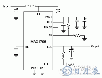 這種方案也可以用于在輸入輸出電壓范圍有重疊的應用中,替換反激式和SEPIC轉換器。當輸入電壓低于輸出時升壓轉換器工作,而當輸入高于輸出時線性調節(jié)器發(fā)揮作用。升壓轉換器和低壓差(LDO)線性調節(jié)器可以被組合到單片IC中(圖6)。這種器件具有一種跟蹤模式,使升壓轉換器的輸出電壓總是高出LDO輸出電壓300mV。這樣,LDO調節(jié)器能夠保證具有足夠的PSRR和電壓裕量(輸入減輸出),可以在各種情況下抑制升壓轉換器的輸出噪聲。