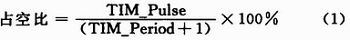當TIM_Period為1 999時,若想得到占空比50%,則TIM_Pulse應設置為(1999+1)/2=1000。