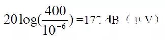 假設(shè)開關(guān)管集電極的干擾電壓在 400V 左右,轉(zhuǎn)換成dB(μV)為: