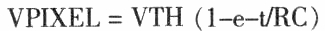 經(jīng)過像素(等效電路見下圖所示)的電壓的階躍響應(yīng)遵循以下公式: