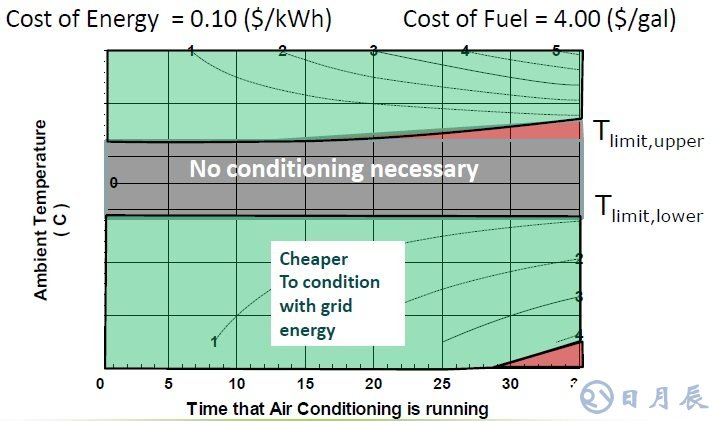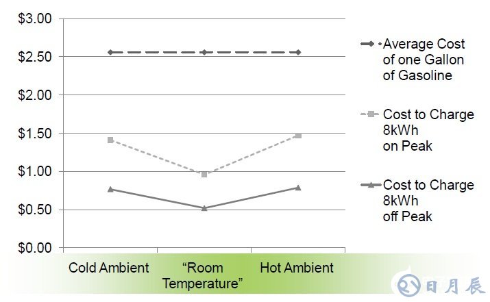以下的這張圖其實(shí)給了很多的信息,里面表征了溫度與用電成本的關(guān)系,其實(shí)質(zhì)也表征了不同溫度下,整個(gè)系統(tǒng)的充電效率的區(qū)別,某種意義上也代表了同樣的充電等級(電流)下,充電時(shí)間的比例。