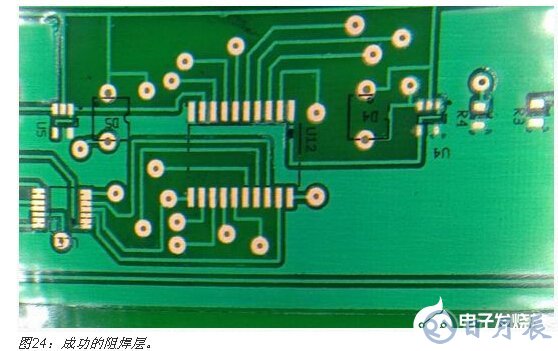 阻焊層是給電路板加一層專門可觸摸的層,它也能使得精細間距的表貼元件焊接起來更加容易。市場上有一種產(chǎn)品叫Dynamask 5000。它基本上是一種即剝即貼的環(huán)氧樹脂薄膜,用起來非常順手。遺憾的是,在美國市場上沒有賣的,只能通過海外銷售商采購。