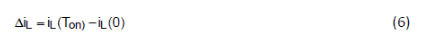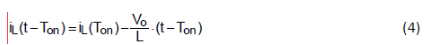 在此期間,電感電流將以斜率從 iL(Ton) 開始線性減少: