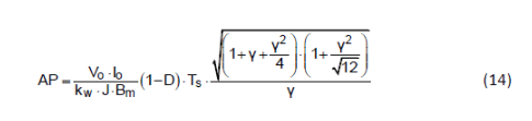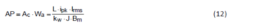 其中,AWT 線圈導體的橫截面積,J 導體中的電流密度,kW 是磁芯的填充系數(shù),Wa 是線圈窗口面積。結合 (10) 和 (11) 式,我們可以得到