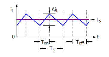 圖2 所示為電感電流波形。因為電感所受電壓是矩形脈沖波,所以電感電流是包含一個支流分量的三角波。