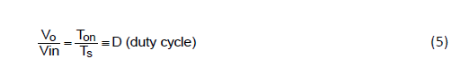 根據電感伏秒平衡的特性,很容易從式 (1) 和 (3) 得到電壓傳輸比: