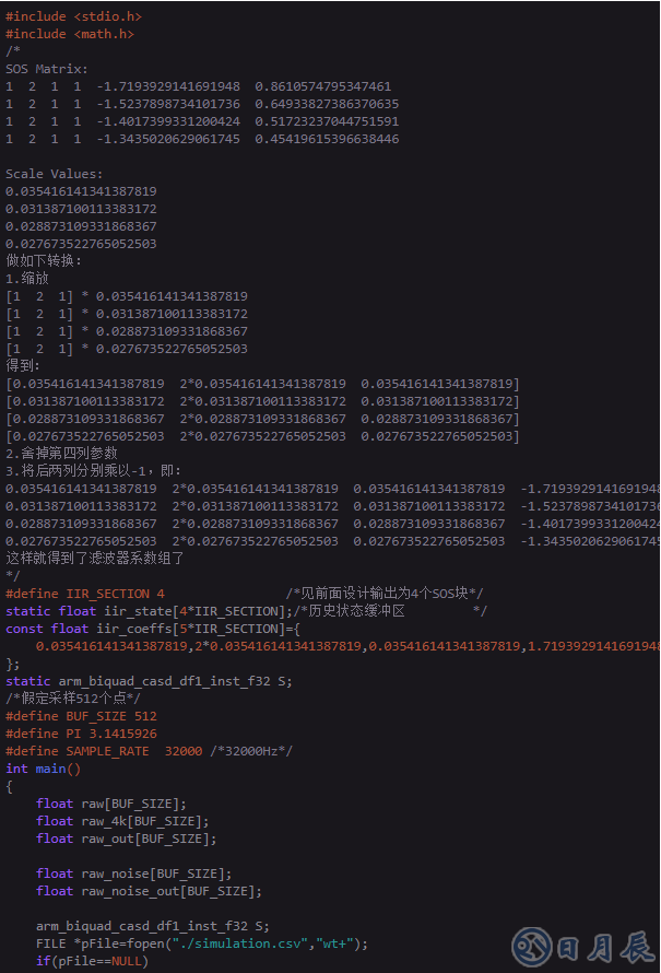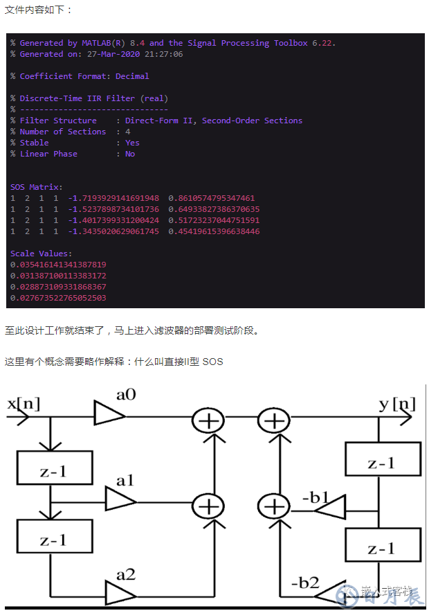 如果需要設(shè)計帶通、高通濾波器其步驟基本類似,只是濾波器的參數(shù)以及SOS塊個數(shù)可能不一樣而已