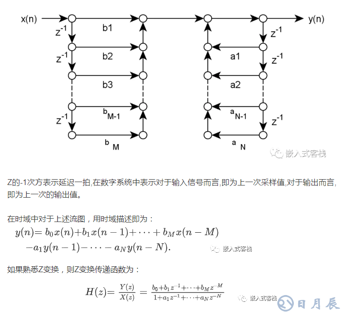那么究竟什么是IIR濾波器呢?從數(shù)字信號處理的書籍中我們能看到這樣的Z變換信號流圖: