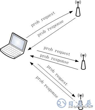 主動掃描就是無線終端(手機或電腦等)主動去發(fā)送探測幀,等待附近的無線AP響應探測幀。