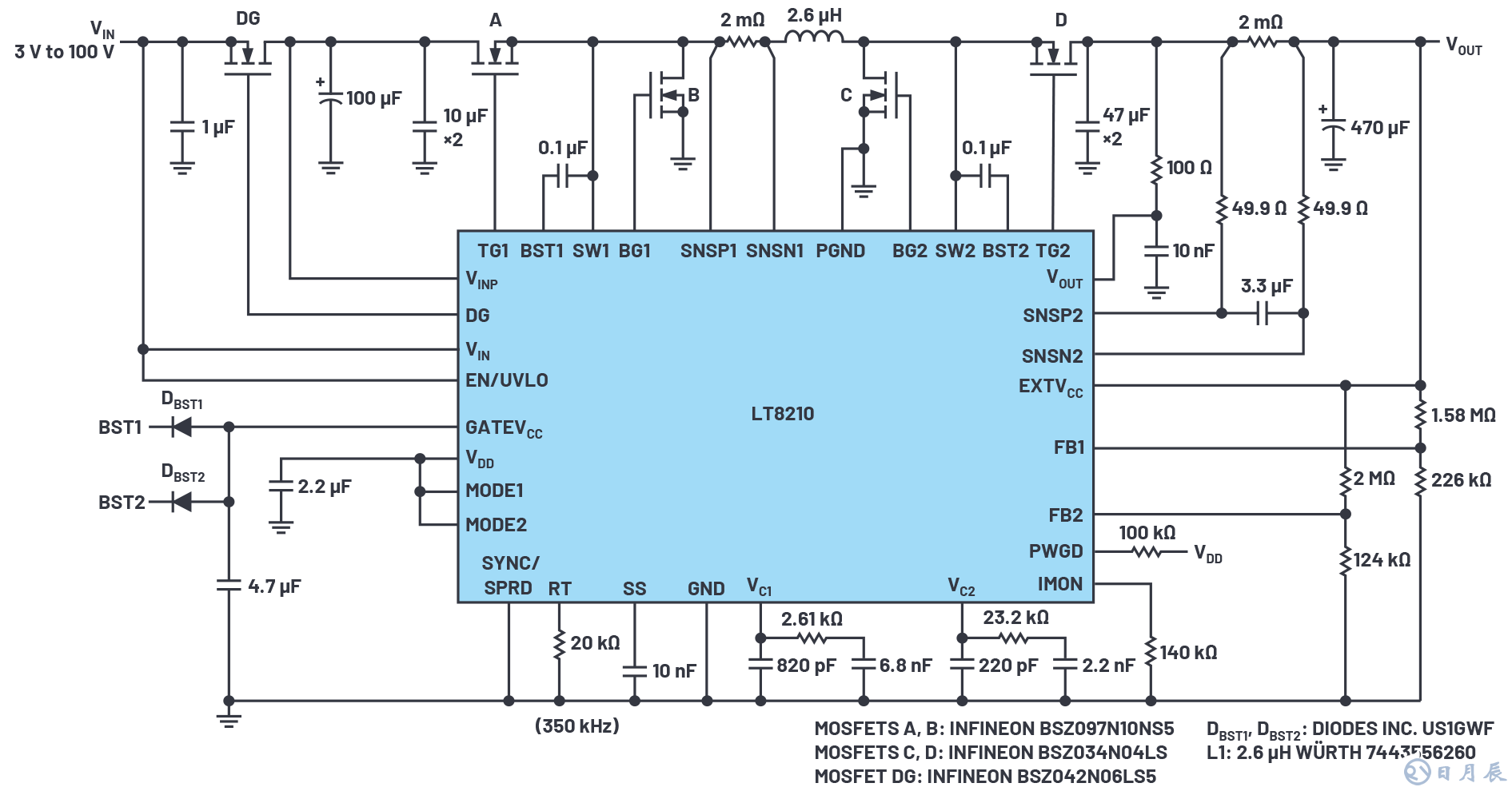 為汽車電子系統(tǒng)設(shè)計(jì)電源時(shí),LT8210 4開關(guān)降壓-升壓DC/DC控制器通過(guò)其2.8 V至100 V輸入工作范圍、內(nèi)置的反向電池保護(hù)和其新帶通工作模式,提供出色的解決方案。帶通模式可以改善降壓-升壓操作,實(shí)現(xiàn)零開關(guān)噪聲、零開關(guān)損失,以及超低的靜態(tài)電流,同時(shí)將輸出調(diào)節(jié)至用戶配置的窗口水平,而不是固定電壓。輸出電壓的最小和最大值與例如負(fù)載突降和冷啟動(dòng)期間的大幅度瞬變相綁定,沒(méi)有MOSFET SOA或者由線性狀況導(dǎo)致的電流或時(shí)間限制。
