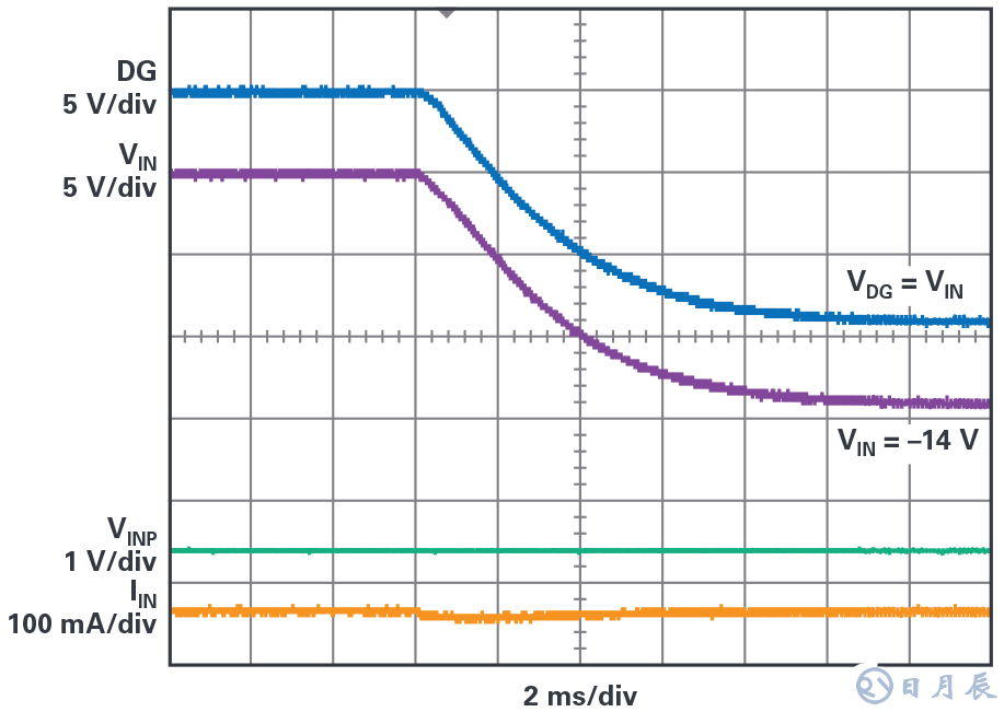 圖7.LT8210對(duì)電池反接的響應(yīng)。