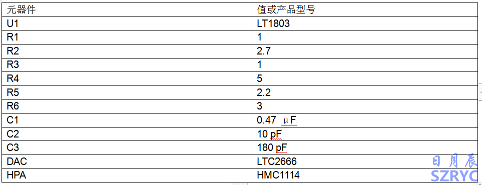測(cè)試所用的元器件值參見(jiàn)表1。