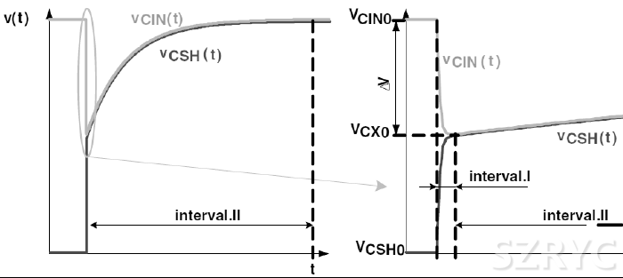 當(dāng)Csh電壓迅速上升到與Cin相當(dāng)之后,我們忽略Rsh對電路的影響,我們重新構(gòu)建第2階段電路模型如下。