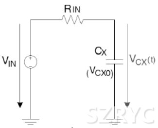 初始狀態(tài),相對來說Vin向Cin充電相對較小,主要看Cin向Csh充電過程,我們構(gòu)建電路模型如下圖所示: