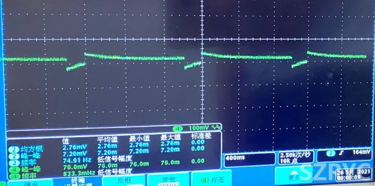 經(jīng)過和客戶確認,客戶后來采用運放做跟隨驅(qū)動的方法,重新測試一版,測試采樣端波形如下圖,從硬件電路來看,應(yīng)該找到問題所在,目前還在驗證中。