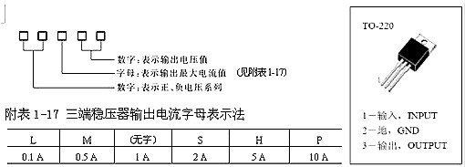 (2) 三端穩(wěn)壓器的型號規(guī)格和管腳分布。