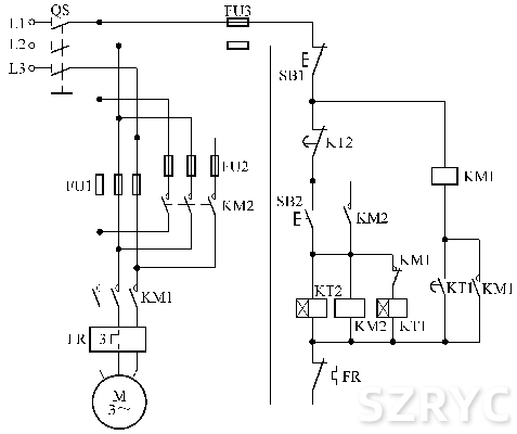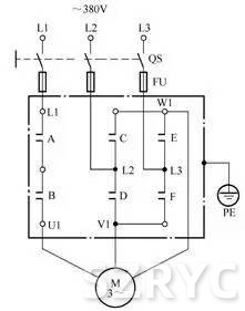 防止正反轉(zhuǎn)轉(zhuǎn)換期間相間短接的三接觸器控制電路