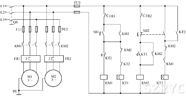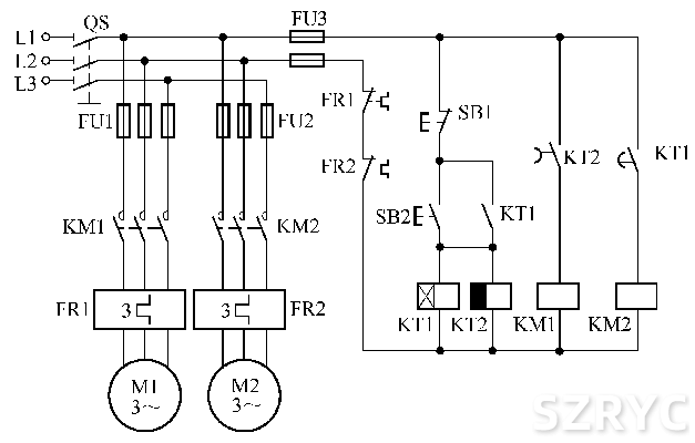 自動切換的兩臺電動機按順序起動逆序停止電路