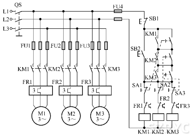 多臺電動機可同時起動又可有選擇起動的控制電路