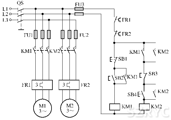 具有三重互鎖保護的正反轉(zhuǎn)控制電路