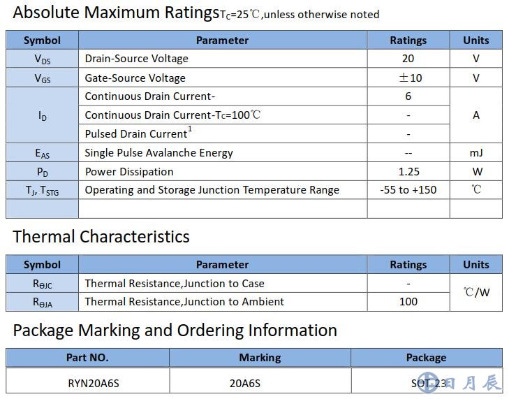 1) VDS=20V,ID=6A,RDS(ON)<28mΩ@VGS=4.5V. RDS(ON)<35mΩ@VGS=2.5V.