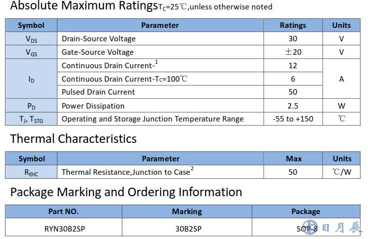 RY1230 SOP-8 12A 30V 型號(hào)已改,參數(shù)不變