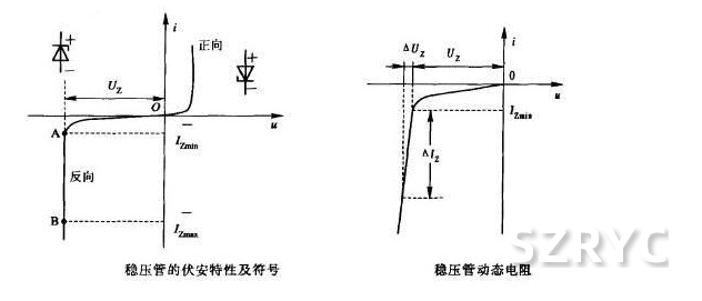 當穩(wěn)壓管在反向接法時,當反向電壓小于擊穿電壓時,反向電流很小,呈現(xiàn)的動態(tài)電阻很大。通常工作電流越大,動態(tài)電阻越小,穩(wěn)壓性能越好。
