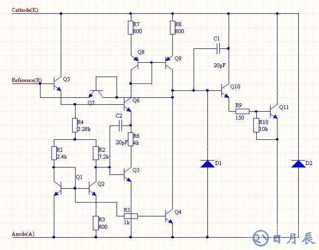 說明一點(diǎn),這個(gè)schdoc的TL431內(nèi)部結(jié)構(gòu),并不能精確輸出2.5V,取而代之的是一個(gè)低于2.5V的電壓,但是這個(gè)電壓仍然具有相當(dāng)高的穩(wěn)定性。相信制造商有辦法通過調(diào)整某些電路參數(shù)使輸出達(dá)到2.5V。