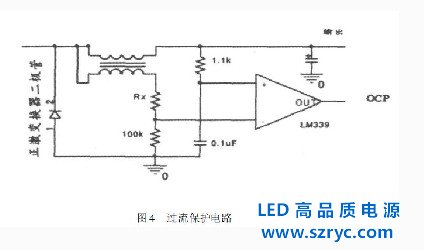 當(dāng)出現(xiàn)負(fù)載短路、過載或者控制電路失效等意外情況時,會引起流過開關(guān)管的電流過大,使管子功耗增大、發(fā)熱,若沒有過流保護(hù)裝置,大功率開關(guān)管就可能損壞; 調(diào)節(jié)電路失效還可能導(dǎo)致LED過流損壞。 過流保護(hù)一般通過取樣電阻或霍爾傳感器等來檢測、比較,從而實(shí)現(xiàn)保護(hù),但它們都有體積大和成本高的缺點(diǎn)。