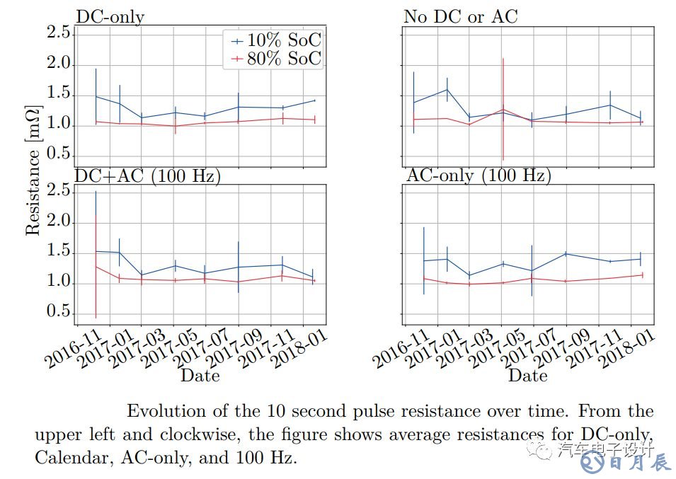 Sven De Breucker在《Impact of Current Ripple on Li-ion Battery Ageing 》一文中,做了一些實(shí)驗(yàn)和測(cè)試。這個(gè)實(shí)驗(yàn)是基于4個(gè)月的短期實(shí)驗(yàn)來(lái)做的