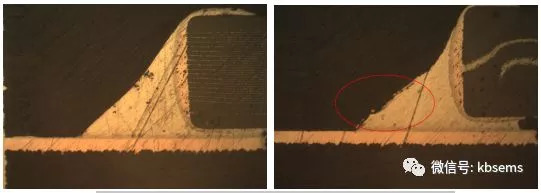 圖8 錫膏區(qū)域熱沖擊情況(左:結(jié)合OK;右:結(jié)合NG)