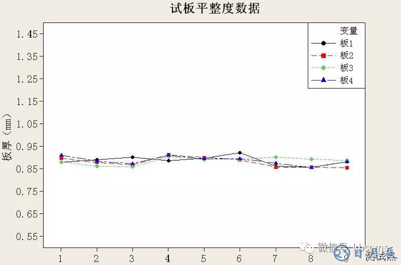 (1) 平整度:采用九格測試方法測量壓合后板厚數(shù)據(jù),如圖12和圖13所示,試樣壓合厚度均勻性一致,差異小,極差0.046-0.064mm,滿足品質(zhì)要求;