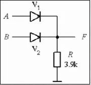 如果A不加電壓,電流就會(huì)順著A那條線流出,F(xiàn)端就沒了電壓;如果AB同時(shí)加電壓,電流就會(huì)被堵在二極管的另一頭,F(xiàn)端也就有了電壓。