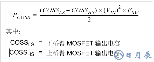 3)、每個(gè)開(kāi)關(guān)周期對(duì)上下臂MOSFET的輸出電容Coss(Cgd+Cds)進(jìn)行充電引起的損耗: