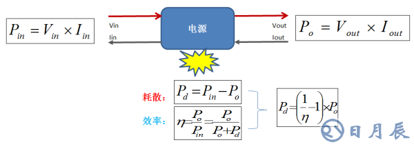 式1.1是從效率和輸出功率Po反推得到耗散功率的。為什么要選擇輸出功率而不是輸入功率呢?因?yàn)檩敵龉β实臄?shù)據(jù)比較容易取得,就是負(fù)載的實(shí)際需求,相比之下輸入電壓的范圍比較寬泛,所以輸入功率比較難定量得到。