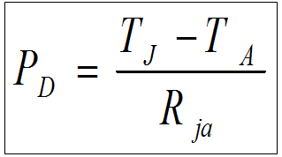 在進(jìn)行熱耗分析時(shí),根據(jù)內(nèi)核至環(huán)境的熱阻Rja及芯片的耗散功率Pd可估算出芯片在特定的環(huán)境溫度Ta下的內(nèi)核溫度Tj,以芯片的內(nèi)核溫度Tj是否超過(guò)了極值Tjmax作為判斷芯片是否安全的依據(jù)。計(jì)算公式如下: