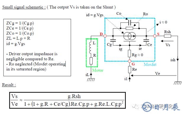 電壓控制工作模式下的傳遞功能取決于跨導(dǎo)g、Cg、Ce電容器和負(fù)載。因此,必須評估新的MOSFET對電流循環(huán)的影響。